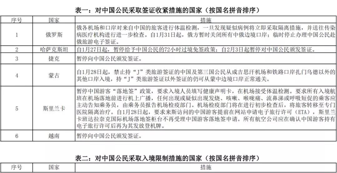 为防控新型冠状病毒感染的肺炎疫情,部分国家已在口岸采取了相应的入境管制措施(详见附表,供参考)。外交部领事司提醒中国公民根据自身健康状况合理安排出行,详细了解并遵守目的地国有关入境规定。