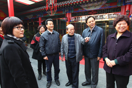 3月18日至21日, 在文化部党组成员、部长助理高树勋同志的带领下,文化部财务司司长赵雯,社会文化司司长于群,与国家公共文化服务体系示范区(项目)创建暨“三馆一站”免费开放工作第十一督查组一起,在北京市朝阳区开展示范区(项目)创建、“三馆一站”免费开放督查工作。督查组审阅了示范区创建和“三馆一站”免费开放工作有关资料,实地考察了朝阳春分民俗文化节日坛祭日活动及朝阳区潘家园数字文化社区、南磨房地区博物馆、黑庄户乡郎各庄村文化活动室、快板刘文化大院,详细了解了基层公共文化机构免费开放、设施建设、活动开展和管理服务等情况。
