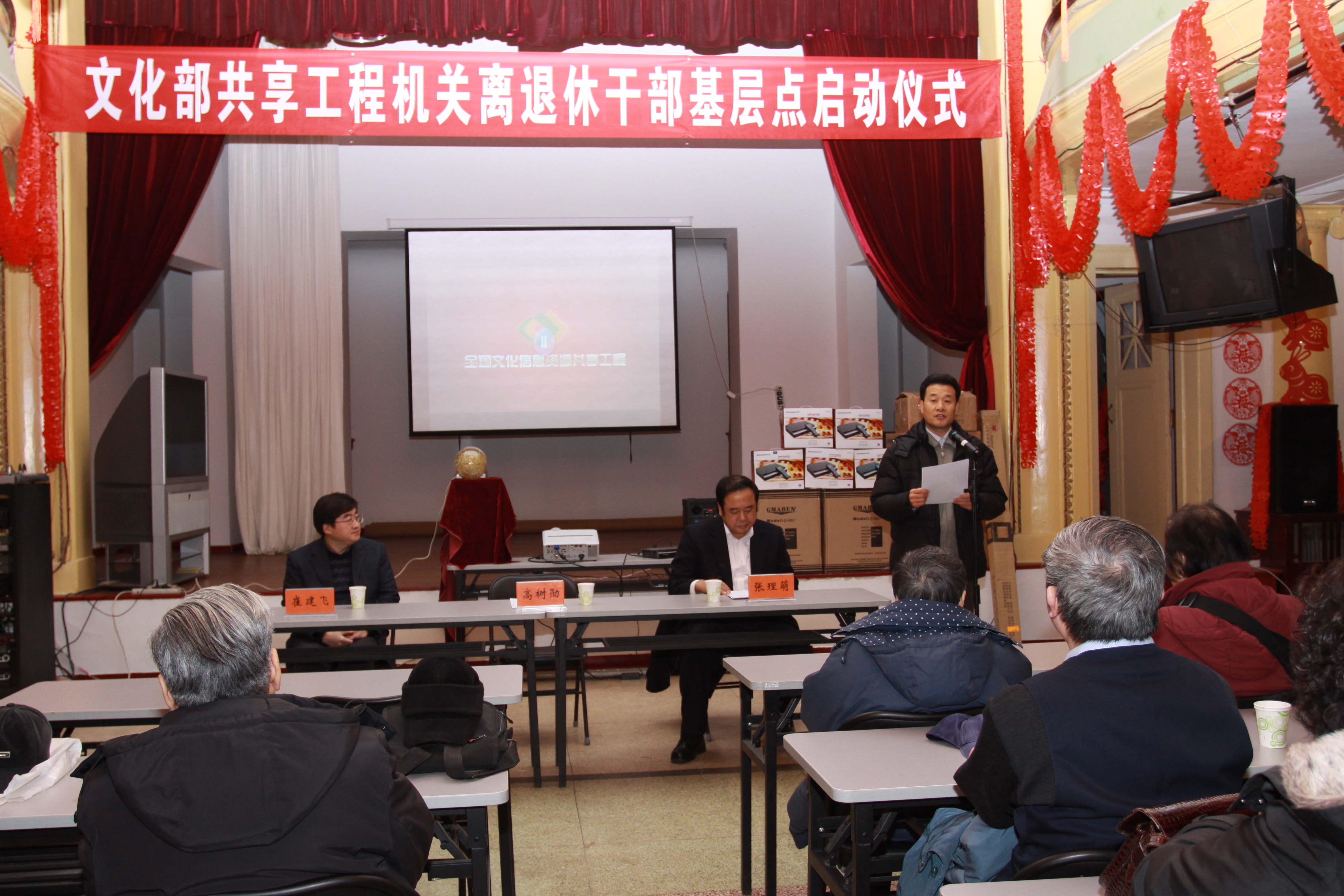 1月26日上午,离退休干部局在203老干部活动中心举办文化部共享工程机关离退休干部基层点启动仪式。部党组成员、部长助理高树勋同志出席活动。部机关九个离退休干部党支部的支部书记、委员,各站老同志代表,离退休干部局和全国文化信息资源建设管理中心的领导和有关同志共70余人参加了启动仪式。