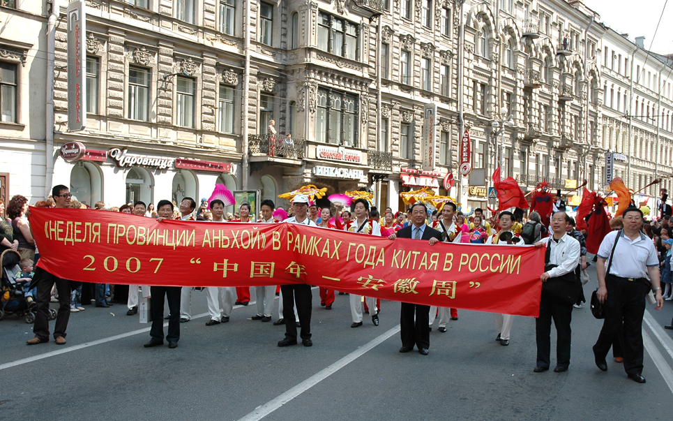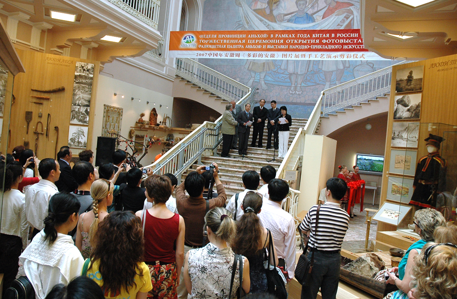 安徽省文化厅:5月28日,当地时间晚上7点,“2007中国年–安徽周”开幕式在俄罗斯圣彼得堡市十月大剧院隆重开幕。俄罗斯总统代表处、俄罗斯外交部代表处、列宁格勒州政府及外国驻圣领事馆官员和圣市文化、科技、旅游、企业各界人士以及华侨、华人共3000多人出席开幕式,省人大常委会副主任张春生,圣彼得堡立法会议副议长亚吉亚,中国驻圣彼得堡总领事田二龙分别发表了热情洋溢的致辞。