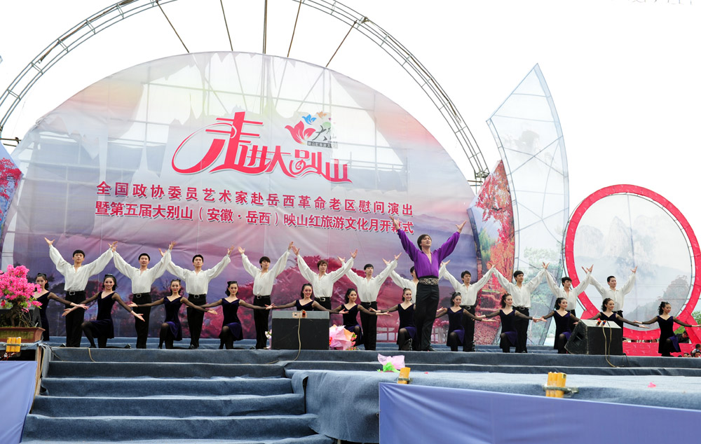 杜鹃花如海,见证革命先烈丰功伟绩;翠兰茶飘香,氤氲秀美岳西人杰地灵。4月23日,第五届大别山(安徽·岳西)映山红旅游文化月开幕式,暨全国政协委员艺术家来岳西慰问演出,在安徽省岳西县隆重开幕。自2008年以来,该县已经成功举办四届大别山(安徽·岳西)映山红旅游文化月活动,以花为媒,全面推介岳西旅游和农特产品。