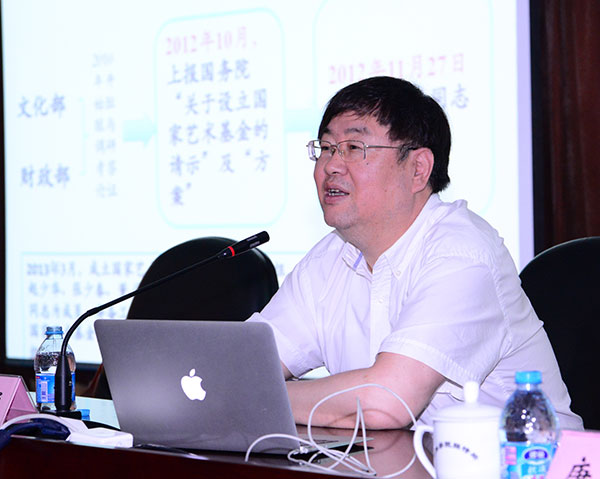 国家艺术基金管理中心主任韩子勇、副主任王勇分别就基金的制度设计和地方职责、基金的四个申报指南要点阐释作培训报告。韩子勇指出,成立国家艺术基金,体现了政府转变职能、推进管办分离的创新思路,实现了由“养人”到“养事”的投入资助模式,打破了行业、系统、体制和地域的诸多限制,将有效提高财政资金在文化产品创作上的导向性和使用效率。会议就基金的网上申报流程做了现场演示。参会代表热烈交流、踊跃提问,纷纷表示要把握机遇,做好基金申报工作。
