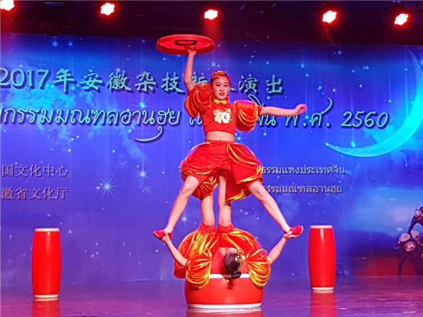 春节期间,安徽省文化厅携临泉杂技赴埃及、泰国参加“欢乐春节”演出活动,取得良好效果。