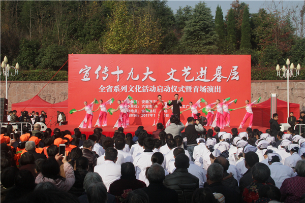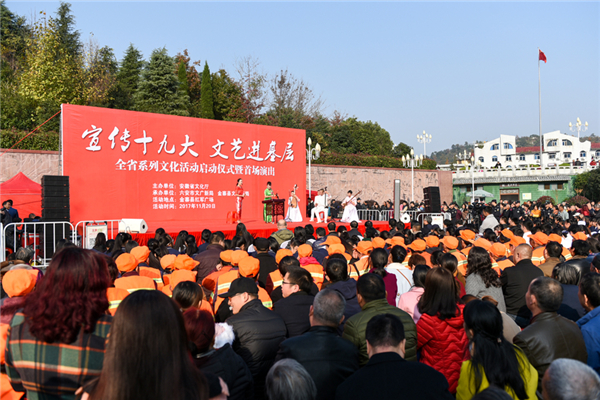 11月20日下午,安徽省“宣传十九大 文艺进基层”系列文化活动启动仪式暨首场演出在革命老区金寨县红军广场举行。