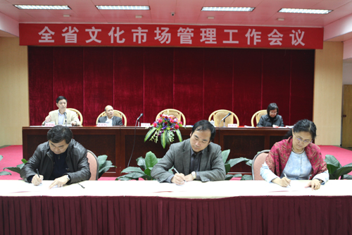 广东省文化厅党组成员、省文化市场综合执法局局长胡振国与各地市签订《广东省各地级以上市文化市场管理责任书》