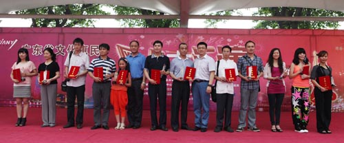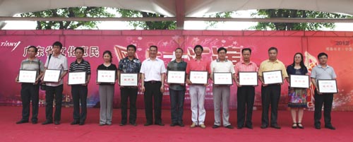 广东省文化厅副厅长杨伟时为组织奖获得者颁奖