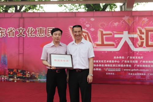 广东省文化厅副厅长杨伟时为特别荣誉奖获得者颁奖