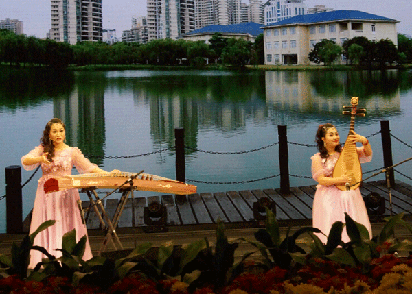 广东省第八届群众戏剧曲艺花会闭幕晚会在广州市花都区举行,图为南音弹唱《最美的新娘》。