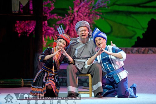 新年伊始,从北京传来喜讯:在文化部举办的国家舞台艺术精品工程授牌仪式上,广西两大剧目入选——由自治区党委宣传部指导,自治区文化厅倾力打造,广西壮剧团创作排演的现代壮剧《天上恋曲》被评为2009-2010年度国家舞台艺术精品工程重点资助项目,广西桂剧团创作排演的新编历史桂剧《七步吟》入选2010-2011年度国家舞台艺术精品工程年度资助项目。
