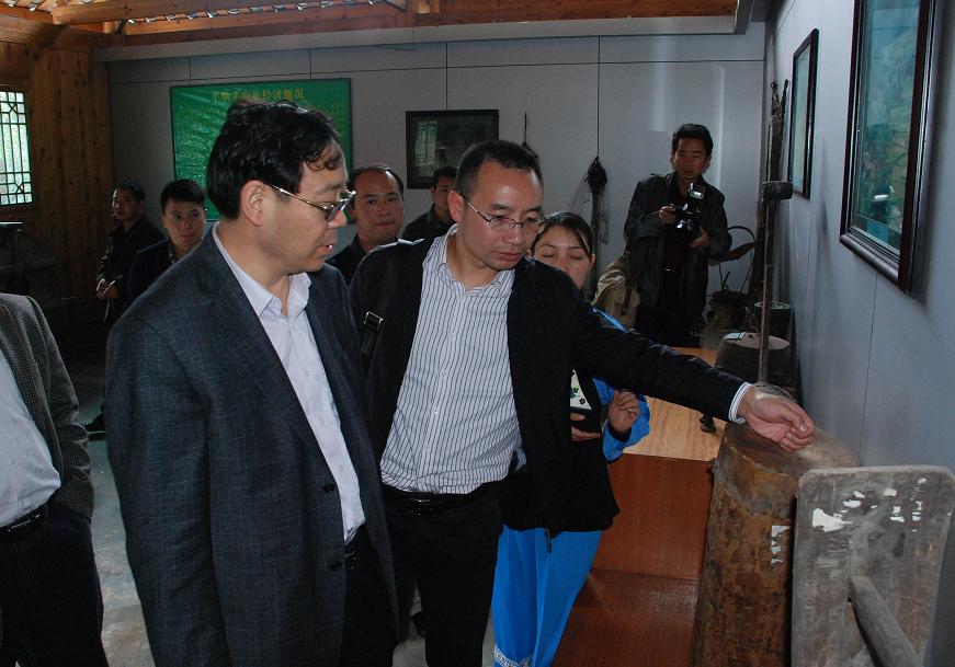 贵州省文化厅党组书记、厅长徐圻(左)详细了解毛南族历史文化