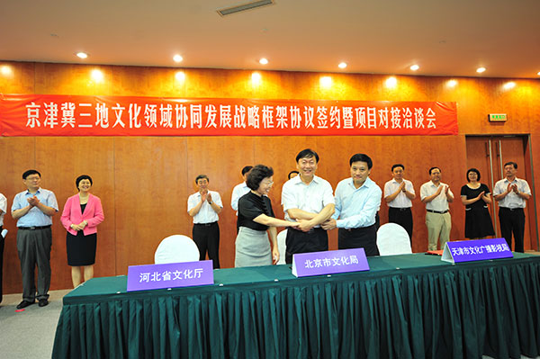 8月28日,北京市文化局、天津市文化广播影视局、河北省文化厅在天津市共同签署《京津冀三地文化领域协同发展战略框架协议》。