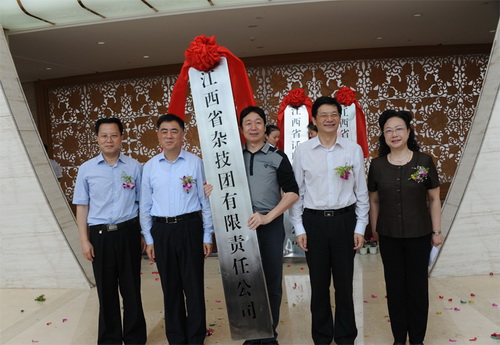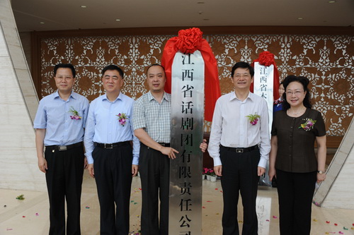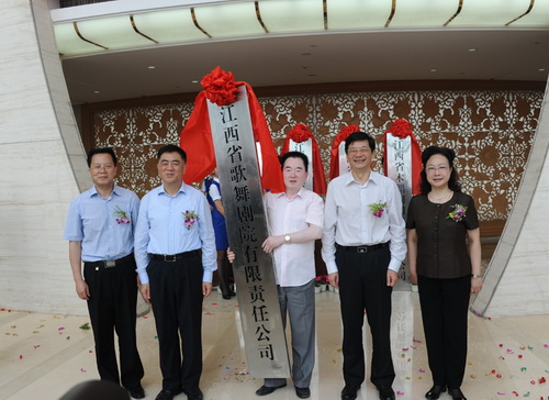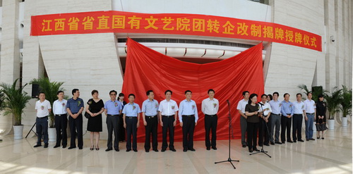 5月31日,五个省直国有文艺院团转企改制揭牌授牌仪式在江西艺术中心隆重举行,江西省委常委、省委宣传部部长姚亚平、副省长朱虹出席仪式并为五个省直转企国有文艺院团揭牌授牌。省委宣传部副部长、省文化厅厅长李玉英主持仪式,省文化厅党组书记舒仁庆、省改革和发展办主任赵东亮,以及省改革和发展办、省委宣传部、省发改委、省财政厅、省人保厅、省总工会等部门的领导和相关负责人,省文化厅领导汪天行、王晓庆、魏玮、徐琳琳、任永新出席仪式,省文化厅机关干部和省直国有文艺院团的职工参加仪式。