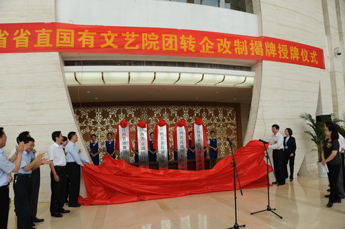 姚亚平在揭牌授牌仪式上讲话,他指出,省委省政府高度重视文化体制改革,省委省政府主要领导亲自过问政策制定、亲自协调有关问题,亲自调度改革的进展改革,每个环节都倾注了各位领导、各个部门和全体演职人员的精力和心血。通过各方努力,按照中央和省委确定的路线图、时间表、任务书,五家国有文艺院团实现了转企改制,如期顺利地完成了中央和省委、省政府规定的阶段性的改革任务。