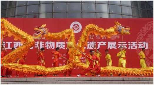 开幕式前,新建区得胜鼓、青山湖区双龙戏珠、进贤县梅庄花棍三个非遗项目演出