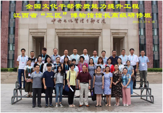 为提升全省“三区”博物馆领导干部管理能力,7月18日,为期一个月的2018年度江西省“三区”博物馆馆长高级研修班在中央文化管理干部学院开班。江西省“三区”博物馆负责人和业务骨干共30人参加了此次研修班学习。