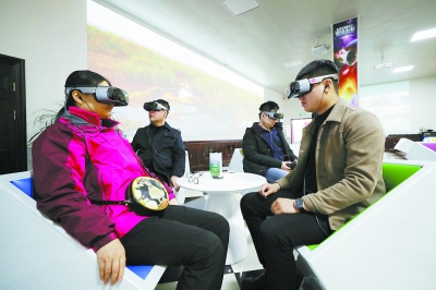 游客在阿尔山国家森林公园体验VR