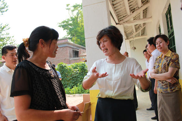 李国琳把画具送到了孩子手中,在郭庄村,她听完老师王春兰多年来独自担任郭庄村40多个孩子的幼儿园老师的事迹,她说“还好有你们,才让孩子们有了希望,才让这个村有了新希望”。