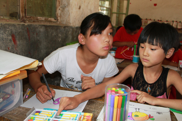 “张庄村小学是我们乡里条件、设施相对较好的学校。但是与城里的学校相比,还有很大差距,孩子们虽然喜欢画画,但是却买不起画画用的工具。”张庄村小学张老师说,“我们一周上两节美术课,也就是老师想着什么,就从黑板上简单画画,而且都是其它课的老师兼着,没有专门的美术老师,这下好了,有从省城来的专业美术老师给孩子们上课了。”