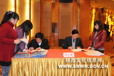 陕西省文化厅与各市文化局签订了2012年度文化建设项目责任书,与厅直文化单位签订了年度目标责任书。对2011年度陕西全省文化建设成绩优秀单位和全省重大文化活动突出贡献单位进行了通报表彰。授予宝鸡市文化广电新闻局等5个在文化建设中成绩突出的单位“2011年度全省文化建设成绩优秀单位”称号,授予铜川市文化广电新闻出版局等21个积极参与全省重大文化活动且成绩优异的单位“2011年度全省重大文化活动突出贡献单位”称号,对在全省重大文化活动特别是文化产业发展和非物质文化遗产保护方面做出积极贡献的陕西文化产业投资控股(集团)有限公司、西安大唐西市文化产业投资有限公司,授予“2011年度全省重大文化活动突出贡献特别奖”。对厅直属单位2011年度目标责任考核情况进行了通报。评选省戏曲研究院、陕西演艺集团有限公司、省图书馆、省雕塑院4个单位为优秀单位,省艺术馆、省美术博物馆、陕西文化音像出版社有限公司、省艺术研究所、陕西书学院、陕西国画院6个单位为良好单位,给4家优秀单位颁发奖牌和5万元奖励。对2011年度陕西文化在全国和国际文化活动中的获奖情况进行了通报,共荣获奖项43项。其中戏剧影视类22项、美术类4项、社会文化类4项、非遗保护类3项,文化产业类7项,其他项目3项。另外,还通报表彰了陕西全省文化系统在“创先争优奉献世园”主题实践活动中获奖的“先进基层党组织”“优秀共产党员”。