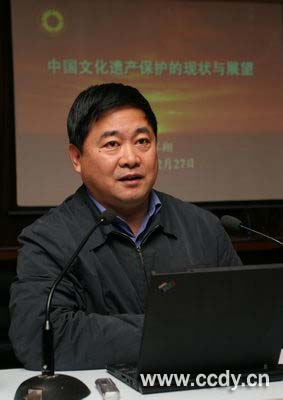 中国文化报(黄小驹 卢旭):文化部党组成员、国家文物局局长单霁翔12月27日来到中国文化报社,为报社全体干部职工作了一场题为《中国文化遗产保护的现状与展望》的讲座。报社总编辑孙若风主持讲座。