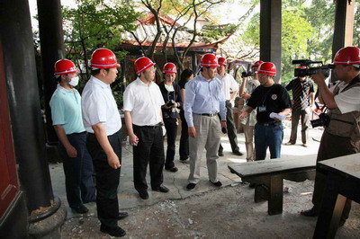 5月19日下午4时,国家文物局局长单霁翔同志率局抗震救灾调查组抵达成都。随即与四川省文化厅、文物局及成都市文化局有关负责同志一起,先后前往世界文化遗产都江堰(二王庙、安澜桥、鱼嘴、伏龙观)四川省重点文物保护单位奎光塔、都江堰市文物局文物库房、金沙博物馆、四川省考古研究院、武侯祠博物馆等单位,慰问看望了受灾文博单位的干部职工,并实地调查了文物受损情况。