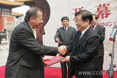 文化部部长蔡武向丹麦大龙公司总裁范汉民颁发