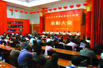 今天,我们隆重召开表彰大会,对展演活动中获奖的剧目和个人进行奖励,同时,要总结和推广此次展演活动中的成功经验,进一步促进国家艺术院团的体制机制创新、艺术创作生产和艺术人才培养,推动我国艺术事业的大发展大繁荣。