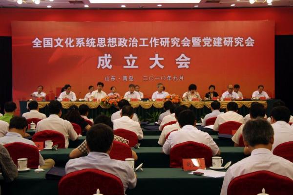 为扎实开展学习型党组织建设,搭建全国文化战线党建工作和思想政治工作的理论研究及经验交流平台,促进文化系统在新形势下更好地开展党建工作和思想政治工作,更加有力地推动文化建设和文化体制改革,按照中国思想政治工作研究会第九次会员代表大会的有关要求,经研究并报文化部党组批准,全国文化系统党的建设研究会暨思想政治工作研究会于9月5日在青岛召开成立大会。