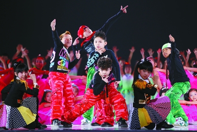 12月19日,第七届中国北京国际文化创意产业博览会在国家体育馆开幕。图为来自新疆的歌舞小达人带领一群孩子表演舞蹈。
