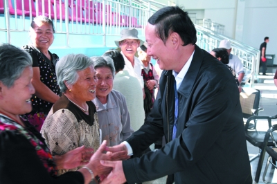 在新疆生产建设兵团调研期间,杨志今亲切看望了兵团农九师一七○团第一代军垦战士。