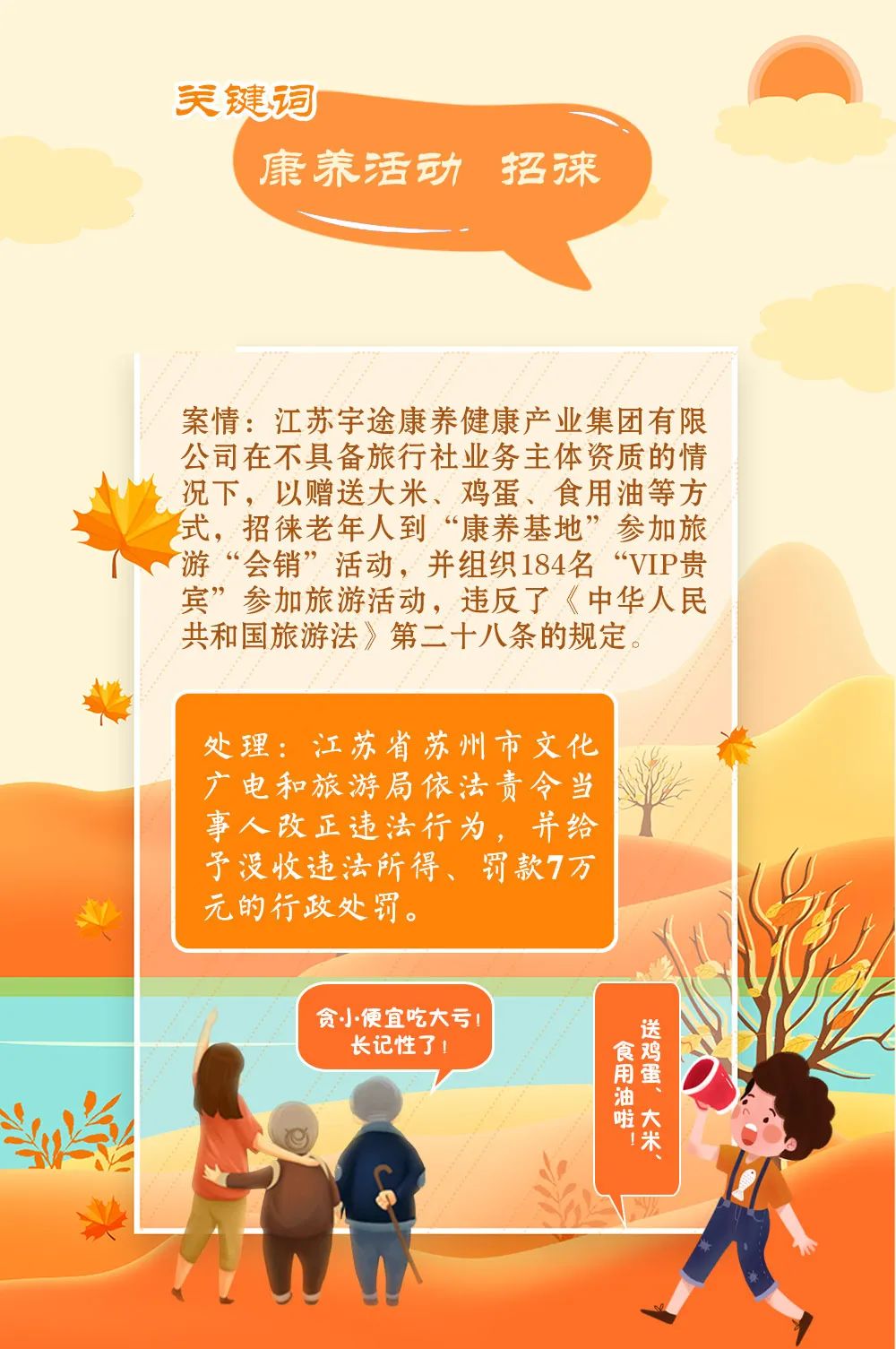 为进一步加强社会监督,规范旅游市场经营秩序,文化和旅游部公布了专项整治行动第四批指导案例,包括以康养活动招徕旅游者、购物送旅游、网络招徕、旅拍、“不合理低价游”的执法案例。国庆节将至,文化和旅游部提示广大旅游者审慎甄别旅游产品,理性选择合法正规的旅游服务,自觉抵制“不合理低价游”,保障自身安全和合法权益。欢迎社会公众通过举报电话12318和举报平台jbts.mct.gov.cn对违法违规旅游市场经营活动进行举报监督。