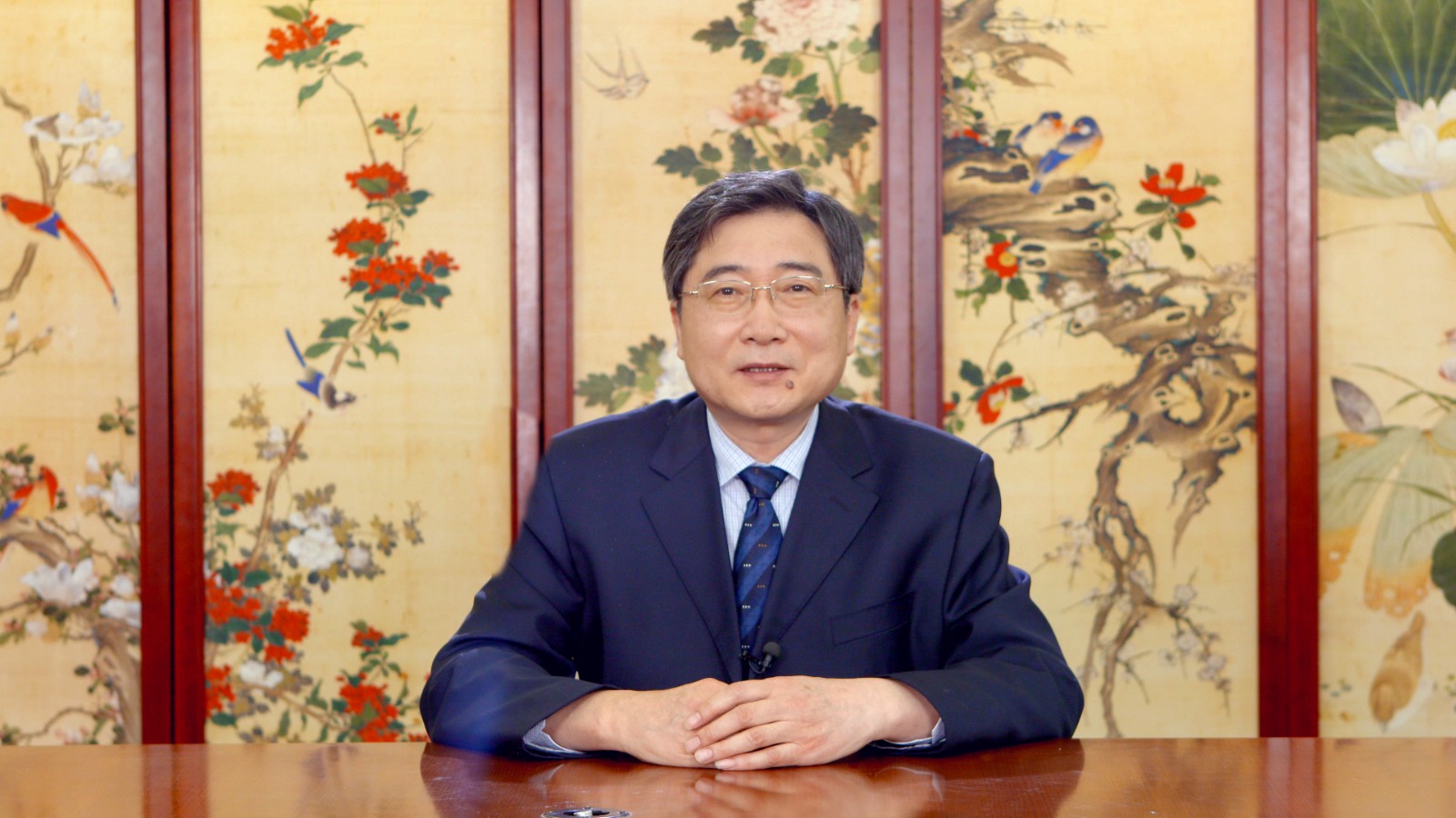 图为海峡两岸旅游交流协会会长张旭发表视频致辞。