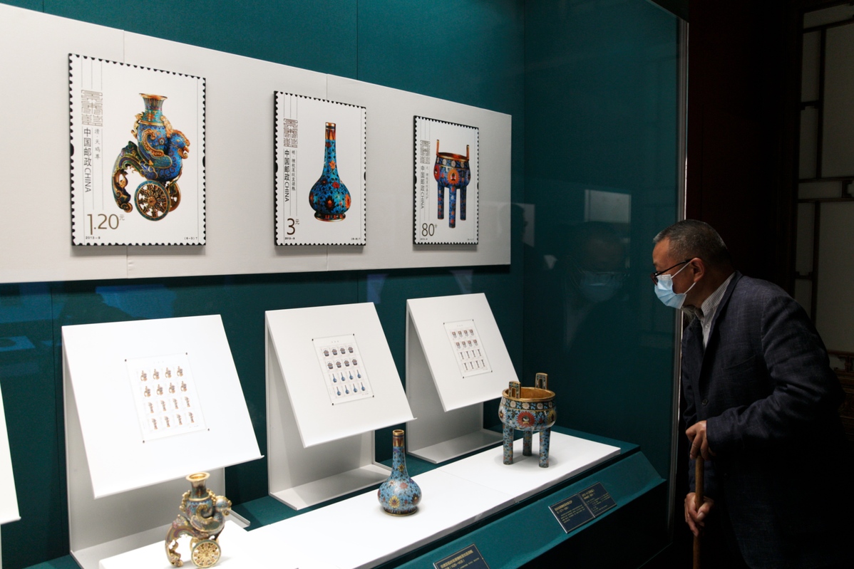 本次展览的最大亮点在于“邮票与文物同框,历史与时代相映”,首次将新中国发行的故宫主题邮票和相应的故宫文物合璧呈现。展览现场,共展出邮票56套1732枚(含故宫主题邮票52套1590枚),邮票手稿等珍贵展品54件,联合发行首日封13件;配合邮票展出的25件故宫文物,涵盖书画、玉器、珐琅器、青铜器、瓷器、家具等多个门类,与同主题的邮票对比展出,交相辉映。展览内容分为“江山多娇”“美轮美奂”“大有既藏”“邮传万里”四个单元。
