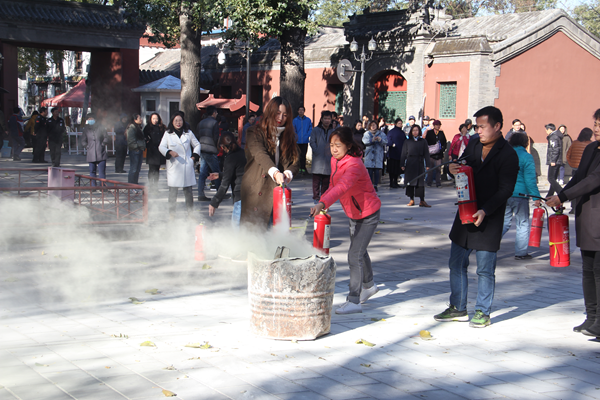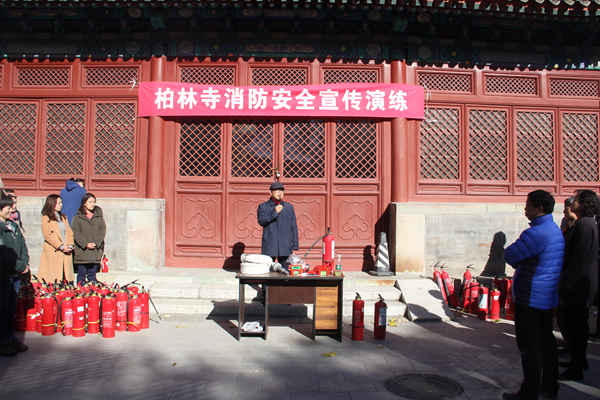 此次演练紧密围绕柏林寺作为全国文保单位的特殊性,有针对地制定演练方案,并完全按照实战要求开展,完成了火灾手动报警,灭火器和消防栓使用方法,紧急避险疏散,微型消防站拉动,防火面具、烟感报警装置使用方法等项目的实际操作。