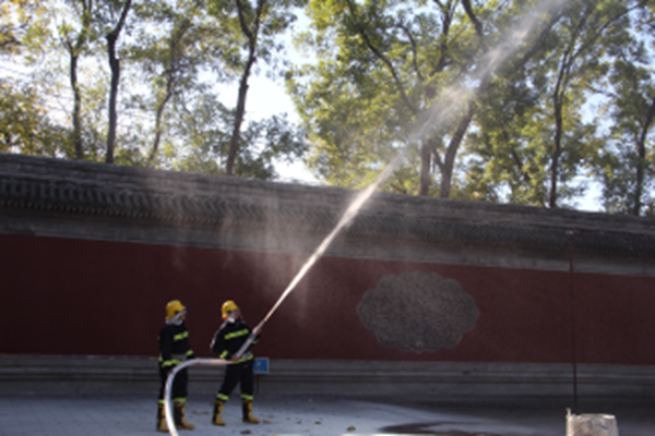 演练结束后,北新桥消防大队大队长高经纬在讲评时对此次演练给予高度评价,他认为演练内容丰富、重点突出、节奏紧凑,紧密切合工作实际。关于柏林寺消防安全工作提出了指导意见:一是要加强对文物建筑安全工作重要性认识,牢固树立红线意识。二是不能只立足于“救”,更要注重“防”,要综合利用技防人防手段,防患于未然。三是继续加强日常培训演练,提高个人应急处置能力,掌握灭早灭小灭初期的消防技能,一旦发生突发险情将损失降至最低。