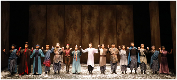 5月19日晚,中国国家话剧院剧场部、研究教育部共同举办了《行者无疆》演后谈活动。交流过程中,观众对剧目舞美设计中敦煌壁画的灵感再现,重明鸟、鹰的造型突破,雪山、风暴的另类呈现表示出极大的兴趣,并对张骞人物内心的变化及马儿、甘父等形象的成功塑造表示了赞许。同时,观众也对剧目的提升和完善提出了一些建议与意见。