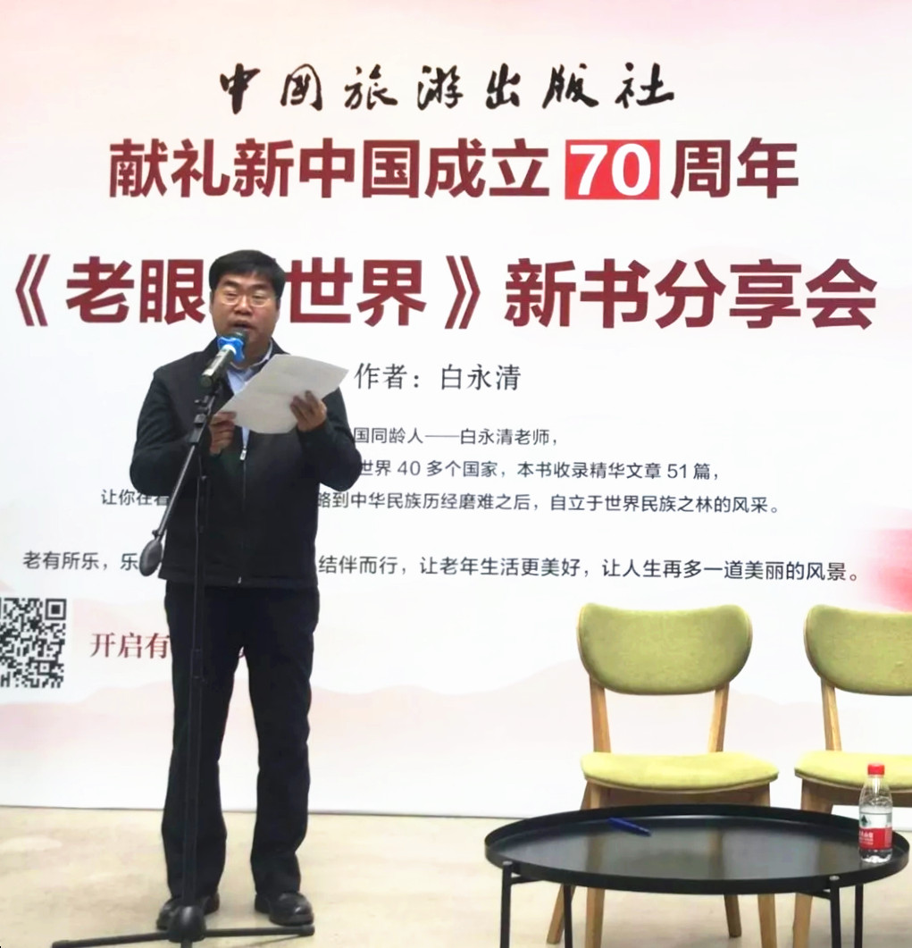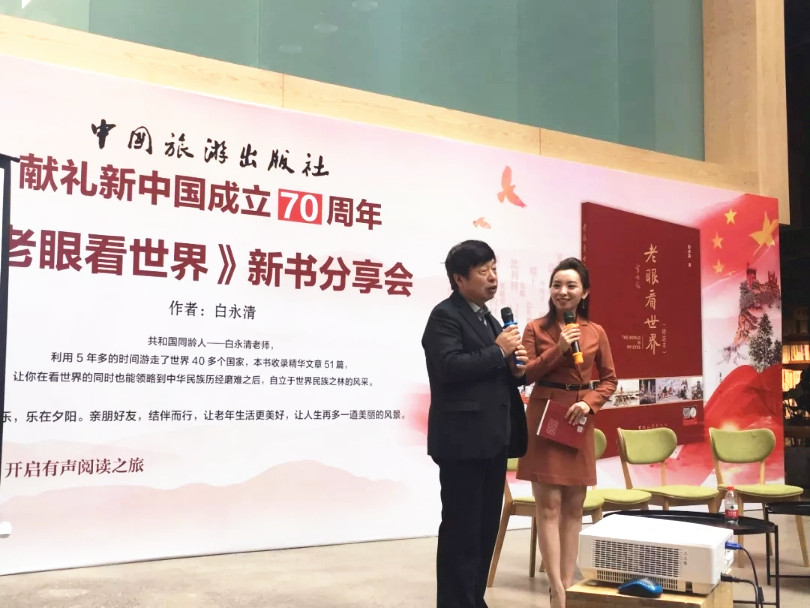 3月29日上午,中国旅游出版社在西四红楼公共藏书楼举行《老眼看世界》新书发布会暨旅游分享会,并藉此向新中国成立70周年献礼。