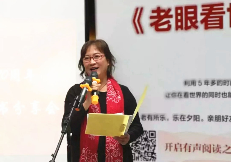 分享会在特邀嘉宾——《老眼看世界》的音频录制者、原常州工学院人文社科学院播音系主任高坤老师的感情饱满、亲切自然的“原文”播讲中结束,她现场对书中《丝路风华》一段的精彩演绎,带领读者悄然穿越千年,仿佛和白老师一起置身于古都长安,看车水马龙,一片繁荣,掀起了现场的小高潮。“有声阅读”也正是白老师和出版社在《老眼看世界》一书中的一次贴心尝试,让老年读者可以轻松“听书”。