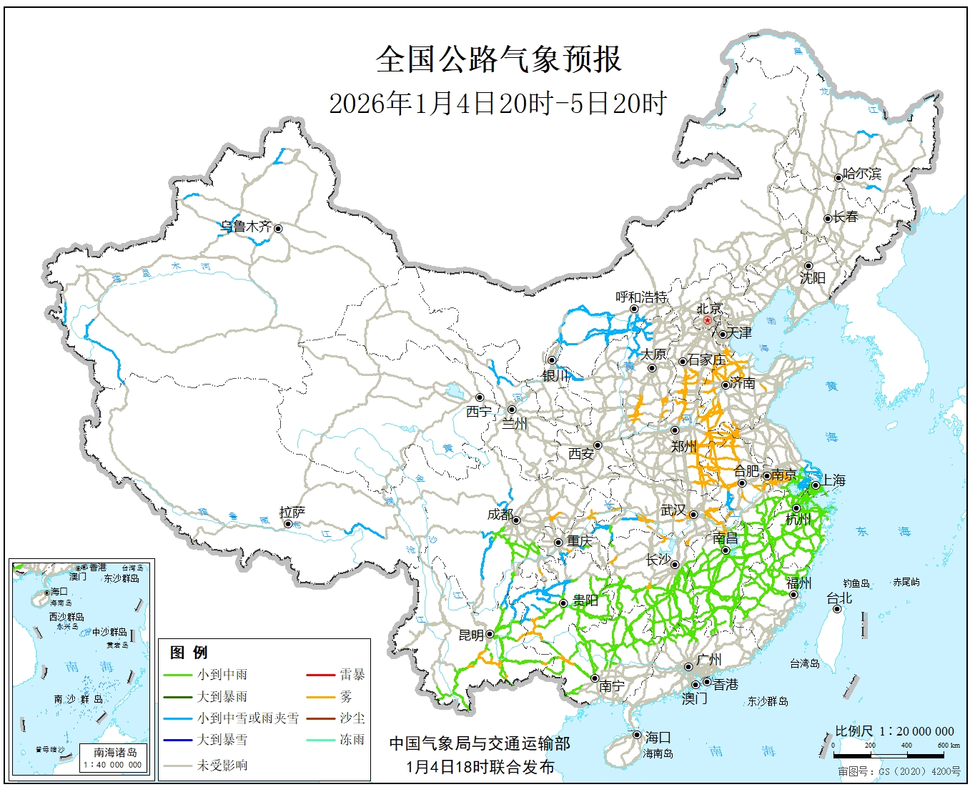 | 下一篇: 中国气象局与交通运输部2026年01月03日联合发布全国主要公路气象预报 |