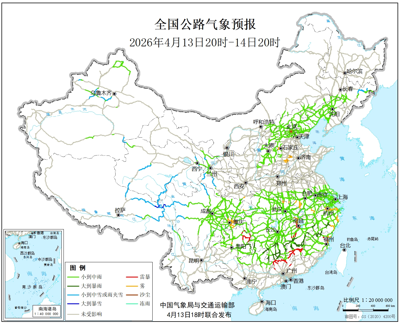 | 下一篇: 中国气象局与交通运输部2026年04月12日联合发布全国主要公路气象预报 |
