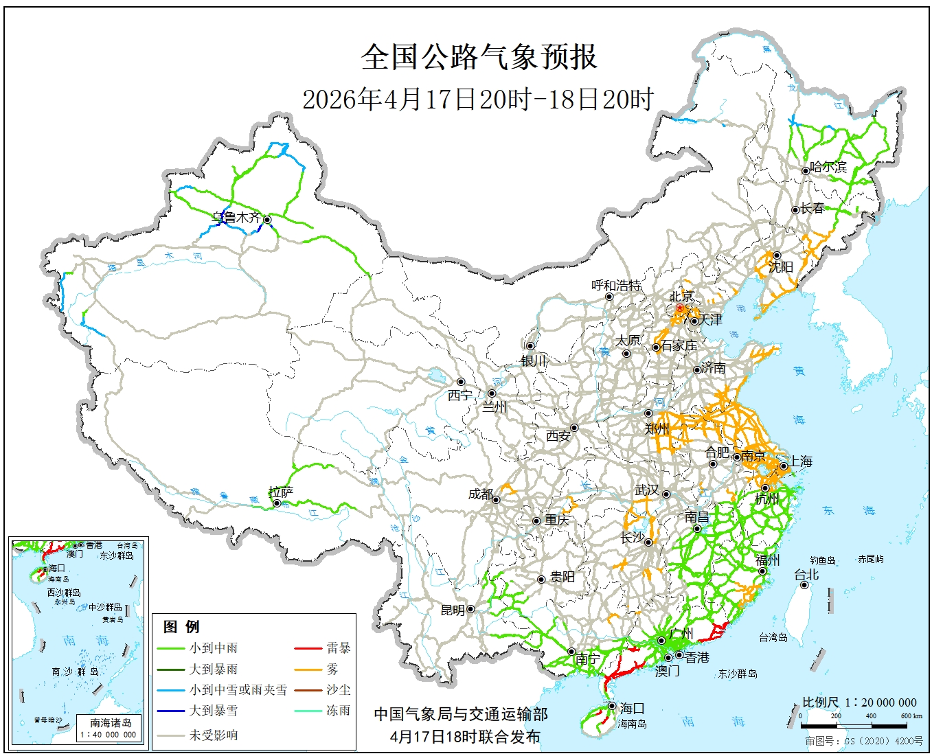 | 下一篇: 中国气象局与交通运输部2026年04月16日联合发布全国主要公路气象预报 |
