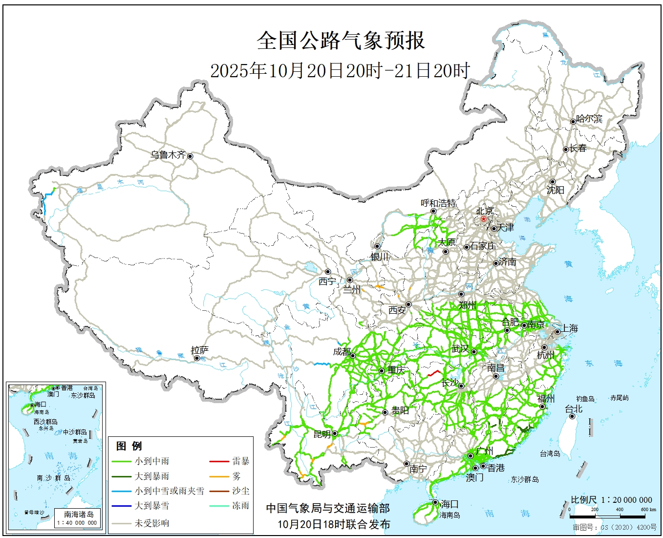 | 下一篇: 中国气象局与交通运输部2025年10月19日联合发布全国主要公路气象预报 |