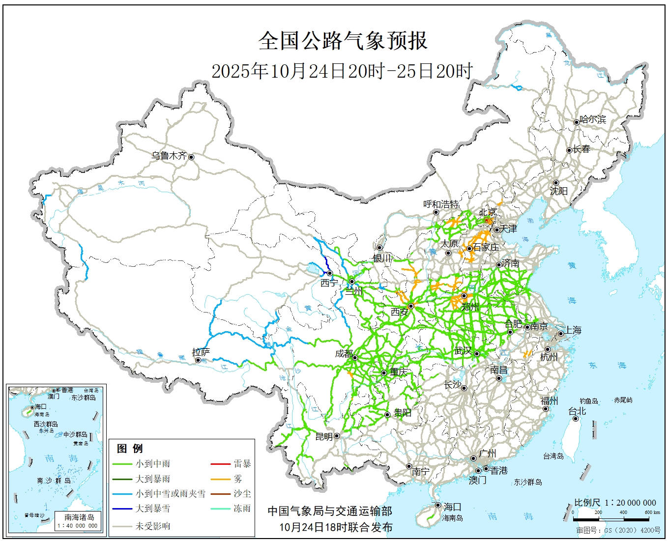 | 下一篇: 中国气象局与交通运输部2025年10月23日联合发布全国主要公路气象预报 |