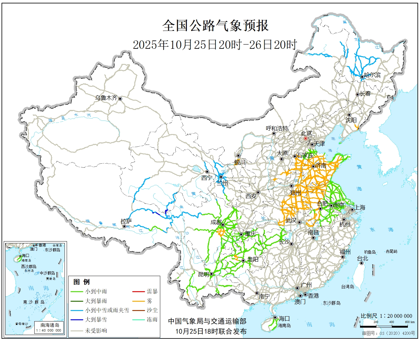 | 下一篇: 中国气象局与交通运输部2025年10月24日联合发布全国主要公路气象预报 |