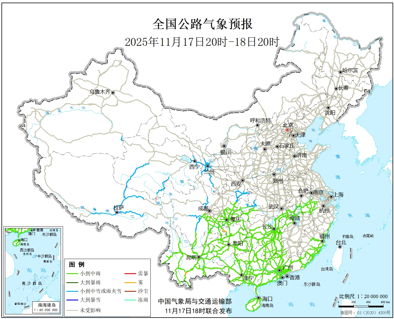 | 下一篇: 中国气象局与交通运输部2025年11月16日联合发布全国主要公路气象预报 |