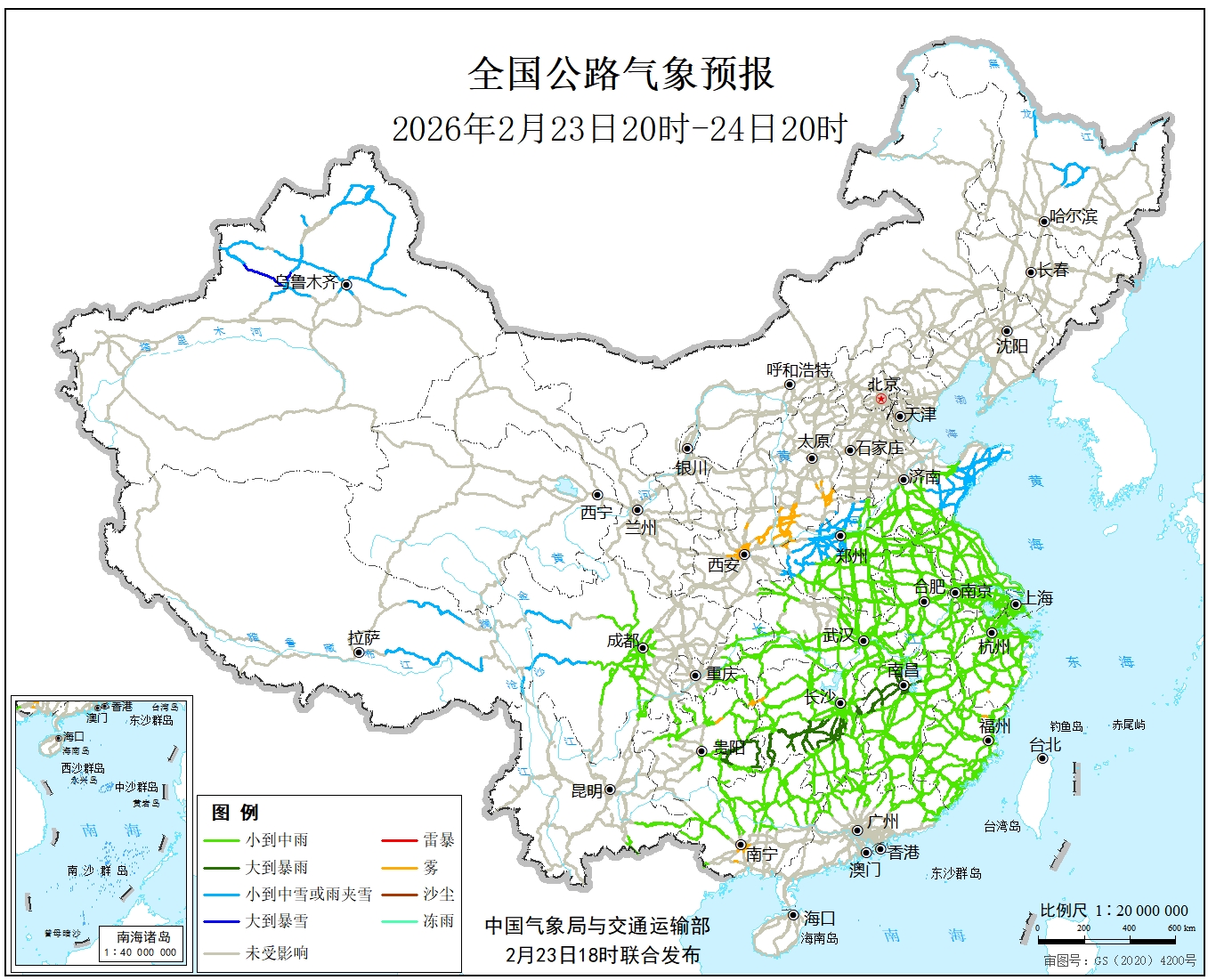 | 下一篇: 中国气象局与交通运输部2026年02月21日联合发布全国主要公路气象预报 |