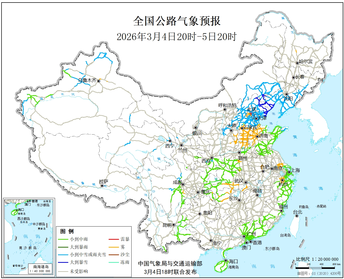 | 下一篇: 中国气象局与交通运输部2026年03月03日联合发布全国主要公路气象预报 |