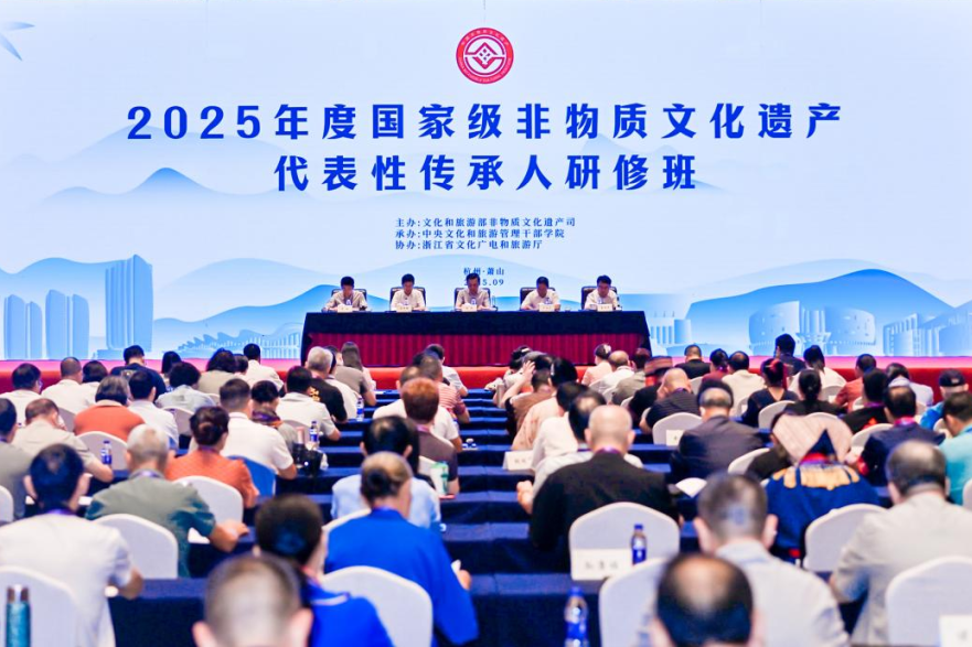 9月8日至12日,由文化和旅游部非物质文化遗产司主办、中央文化和旅游管理干部学院承办、浙江省文化广电和旅游厅协办的2025年度国家级非物质文化遗产代表性传承人研修班在浙江杭州举办,来自全国16个省(区、市)的186位国家级非遗代表性传承人参训。