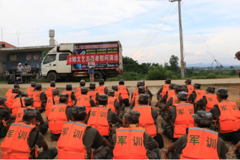 7月18日,6名巾帼文艺志愿者来到矶山联圩中坝,为奋战在防汛抗洪抢险一线的部队官兵开展慰问演出活动。她们自创歌曲,用甜美的歌声,表达家乡父老对人民子弟兵的深情厚谊。