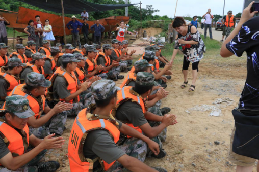 卢丽珍告诉记者,今天她写的这首歌,就是为了我们这些抗洪战士。因为他们为了保护都昌人民的家园,她特意代表都昌文艺工作者献上一片心意。